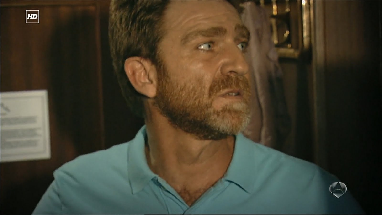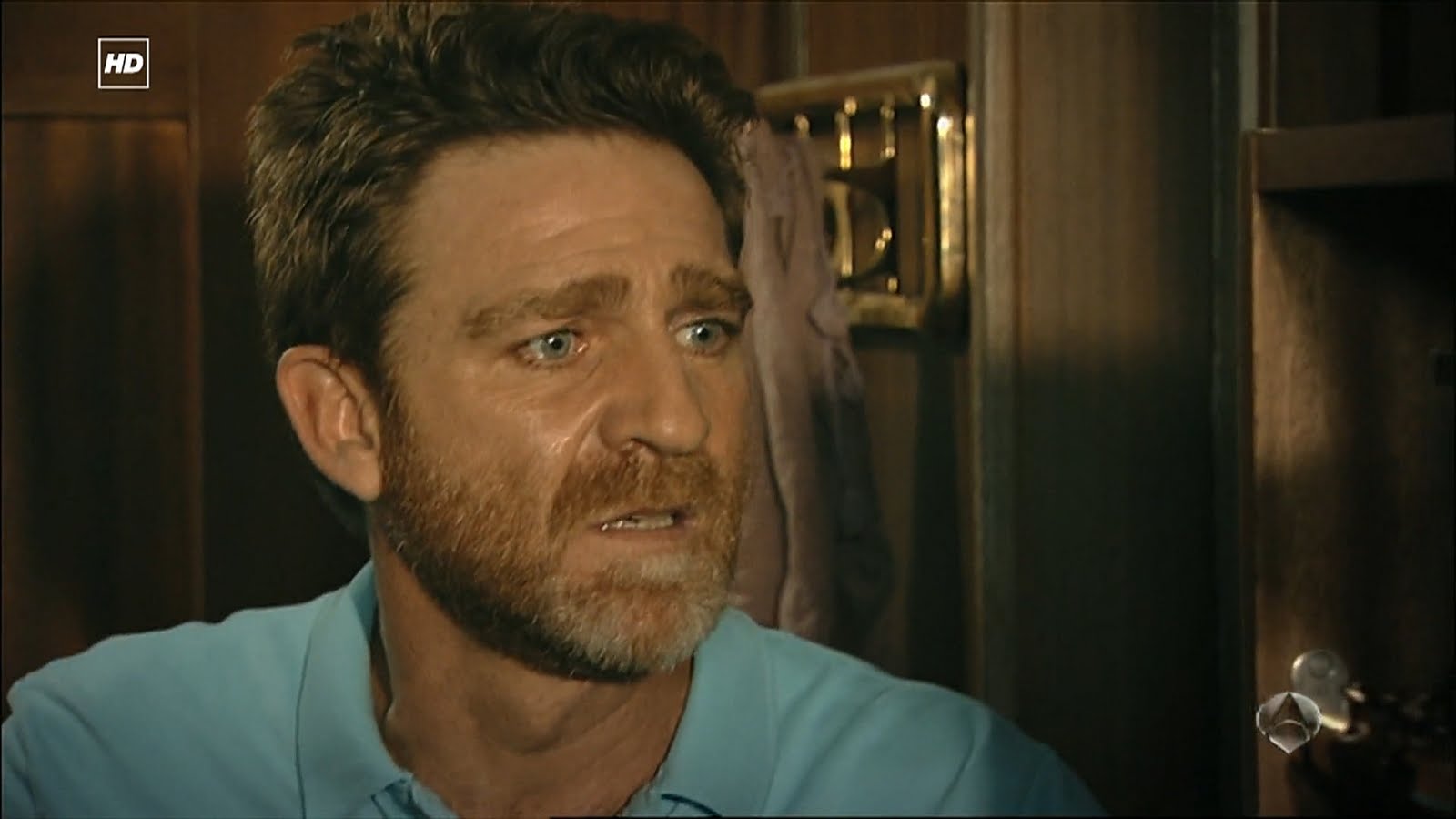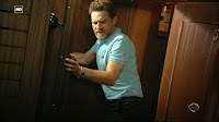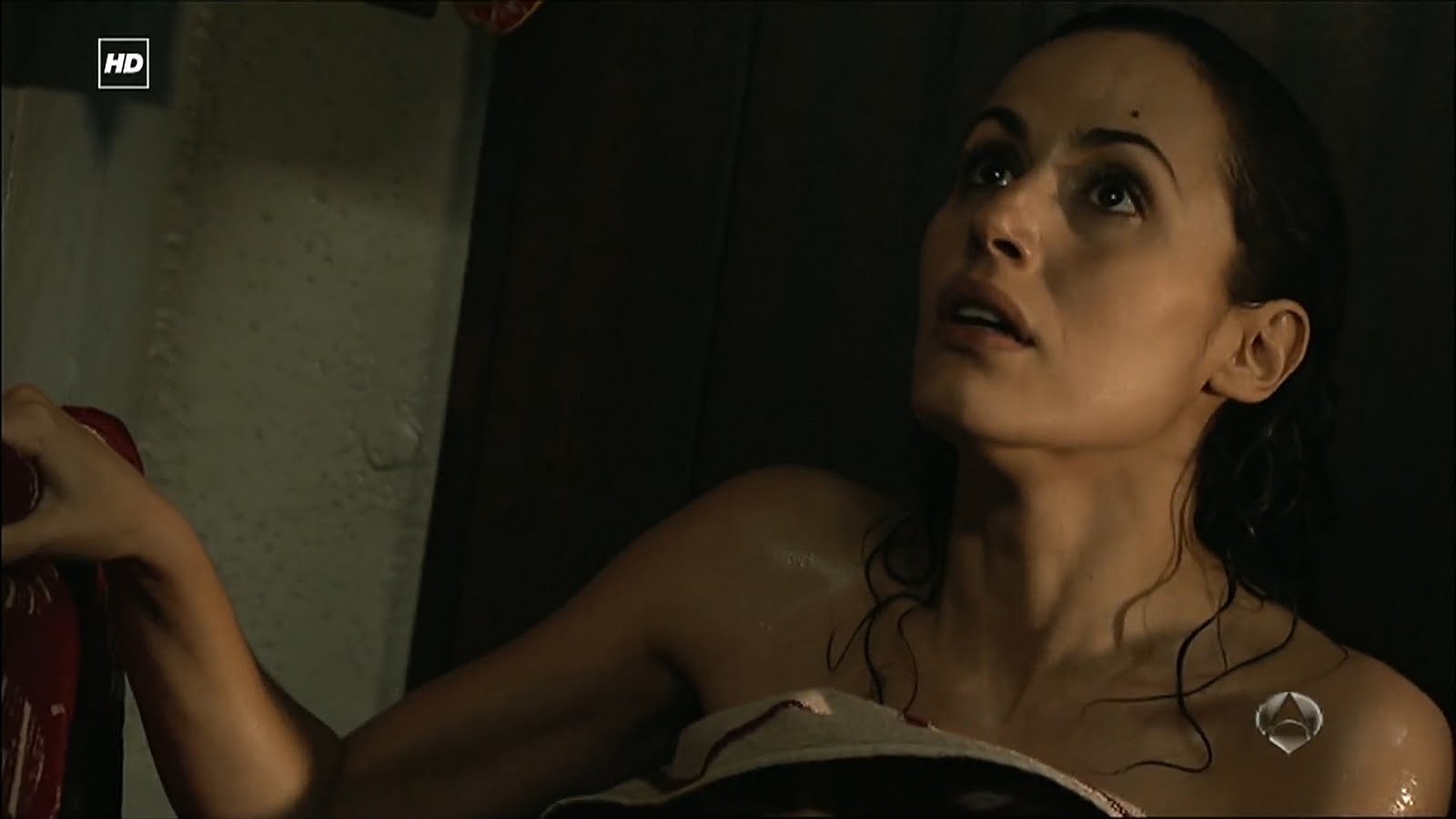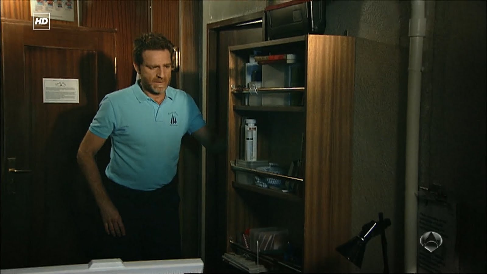 Capturas de la divertida escena del Capítulo 1x06 titulado Elecciones en la que Julia está terminando de ducharse en su camarote cuando Ricardo va a hablar con ella para preguntarle qué está pasando y tras un movimiento brusco por el encallamiento del Barco termina encima suyo.