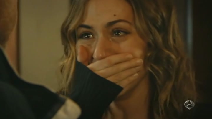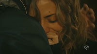 Capturas de la escena del capítulo 1x10 titulado Niebla en la que Ricardo consuela a Julia que se pone a llorar tras desaparecer Ulises.